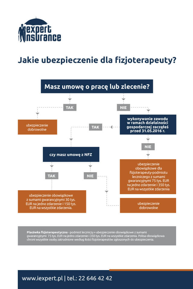 Obowiązkowe OC fizjoterapeuty (z sumami gwarancyjnymi 30 tys. euro na jedno zdarzenie i 150 tys. euro na wszystkie zdarzenia) wykupić muszą przedsiębiorcy posiadający umowę z NFZ.
