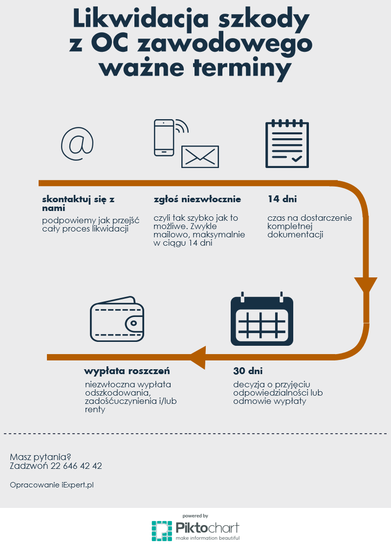 Warto pamiętać, że kontakt z ubezpieczycielem należy poprzedzić skompletowaniem dokumentacji. Proces przebiegnie sprawniej, jeśli zgromadzi się możliwie obszerne akta dotyczące sprawy. Lista dokumentów jest długa, ale nieco inna dla każdej profesji. Wspólny mianownik stanowi umowa z klientem lub kontrahentem, z pracownikami lub podwykonawcami, którzy realizowali obsługę zlecenia dla osoby, która zgłasza się jako poszkodowana. Umowa regulująca wzajemne prawa i obowiązki jest kluczowa, dlatego powinna być zawarta w formie pisemnej.